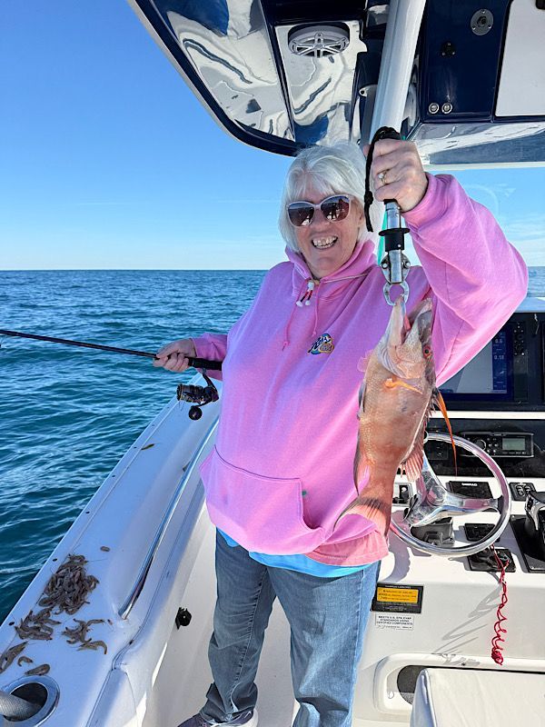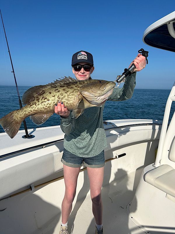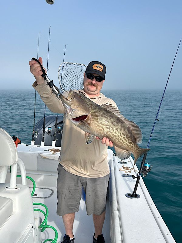 We’re starting to see more and more red grouper showing up in shallower water, and that’s always exciting. Generally keepers are only caught beyond 60' of water but we're seeing more and more in close. Usually caught on shrimp as bycatch but dropping down a large chunk of cut bait might be worth it for one a nice grouper!