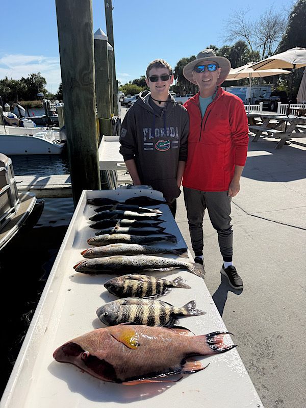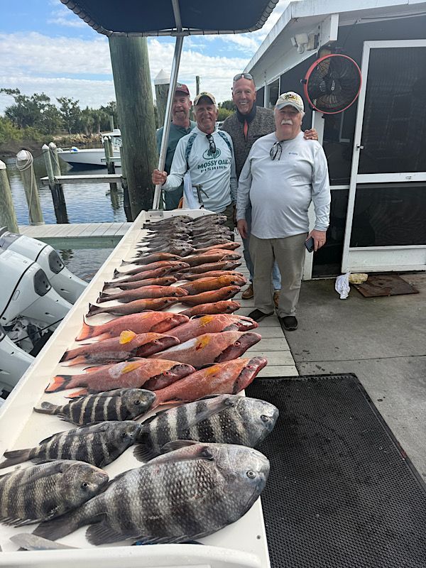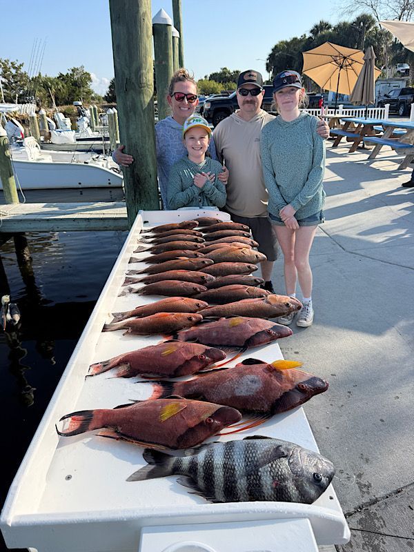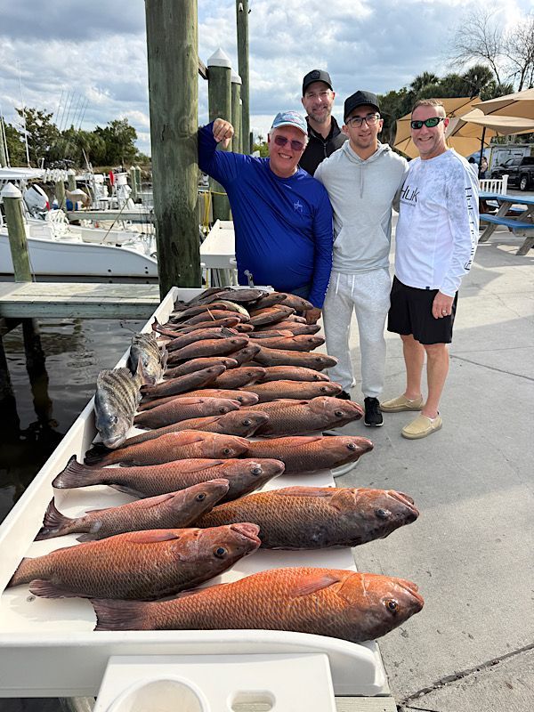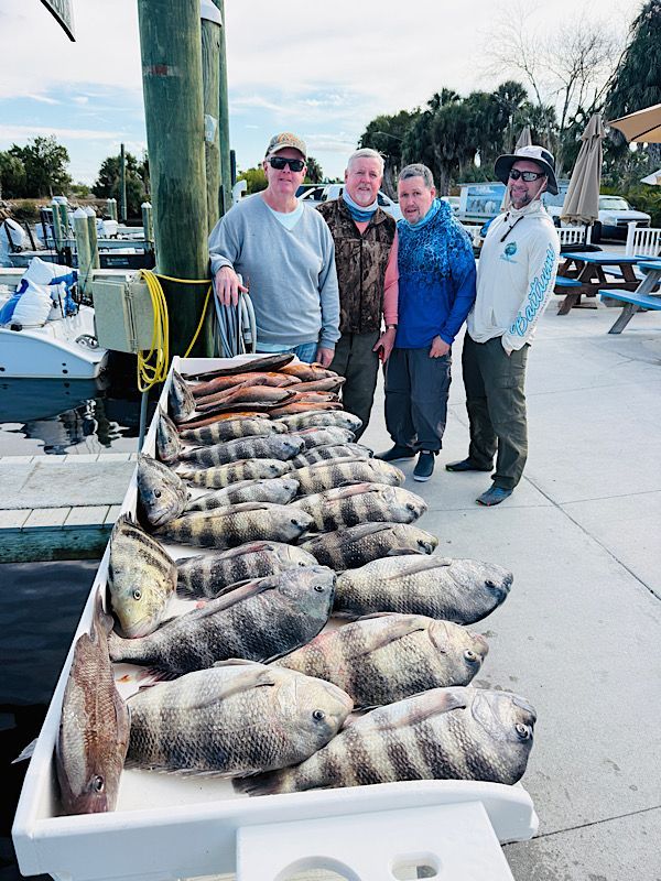 It’s that time of year and sheepshead season is officially underway. We’re starting to see some very nice catches, and the bite should only improve as winter settles in. Standard for January the weather has been a bit of a pain lately and has led to a few canceled trips, but the days we've been able to get out the fishing has been excellent. Already seeing some nice sheepshead breaking the 5 pound mark. There's a few in less than 20' of water but best fishing has been out deeper.