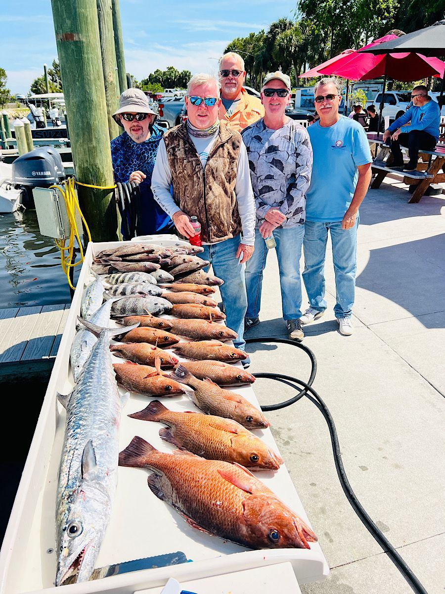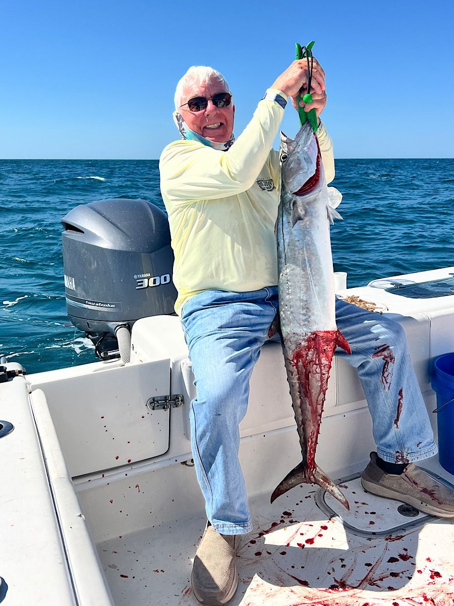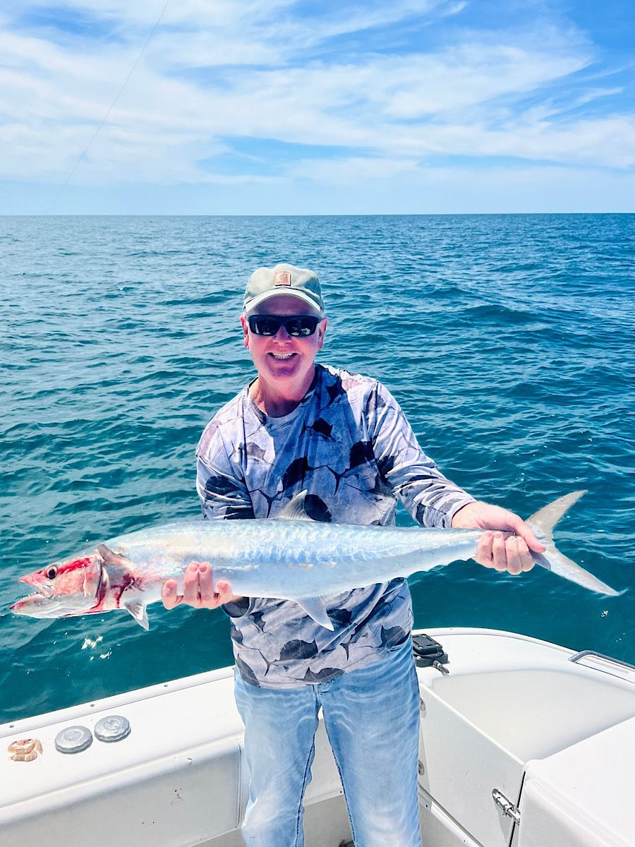 King Mackerel—Kings are in! We have been finding most of our kingfish from 20’ of water on out. While targeting rock piles, a freelined pinfish or threadfin herring has been the ticket to adding a "smoker" to the mixed bag trip. Trolling big Rapala lipped plugs has been a great resource for us to actively fish between spots and get some dramatic aerial strikes from kings as they hit plugs and launch skyward.