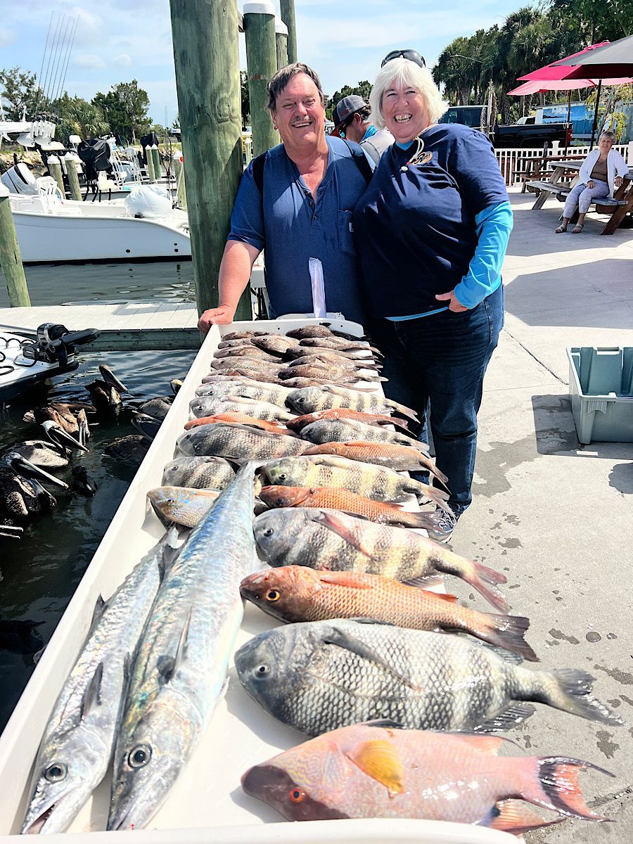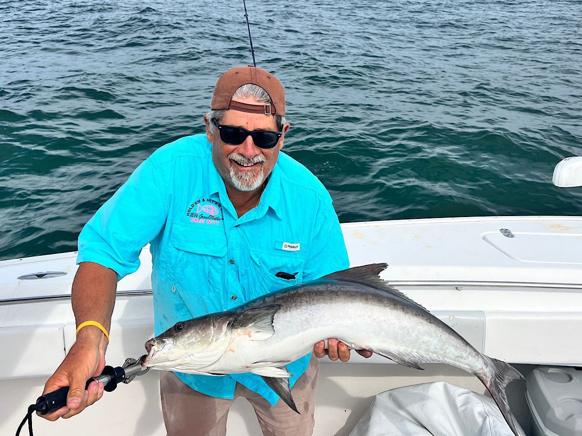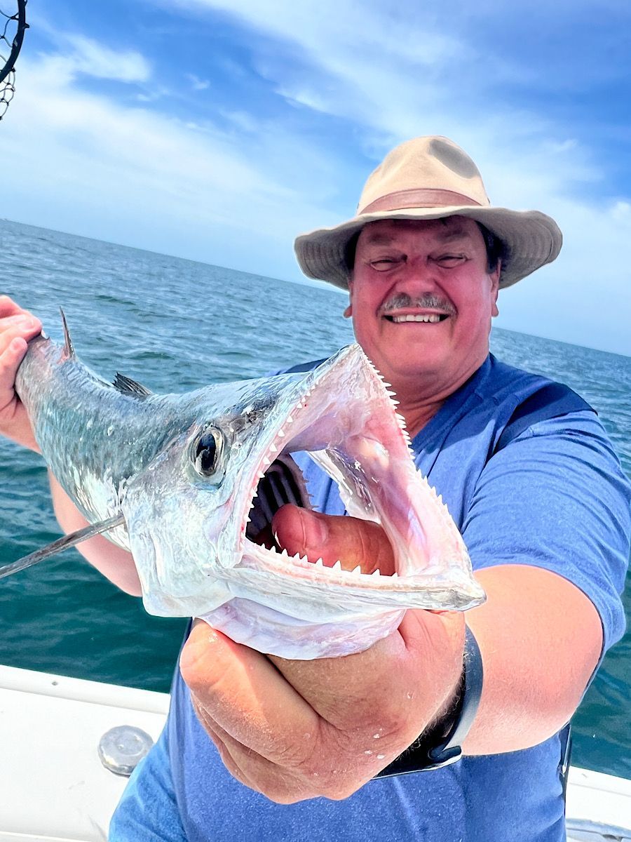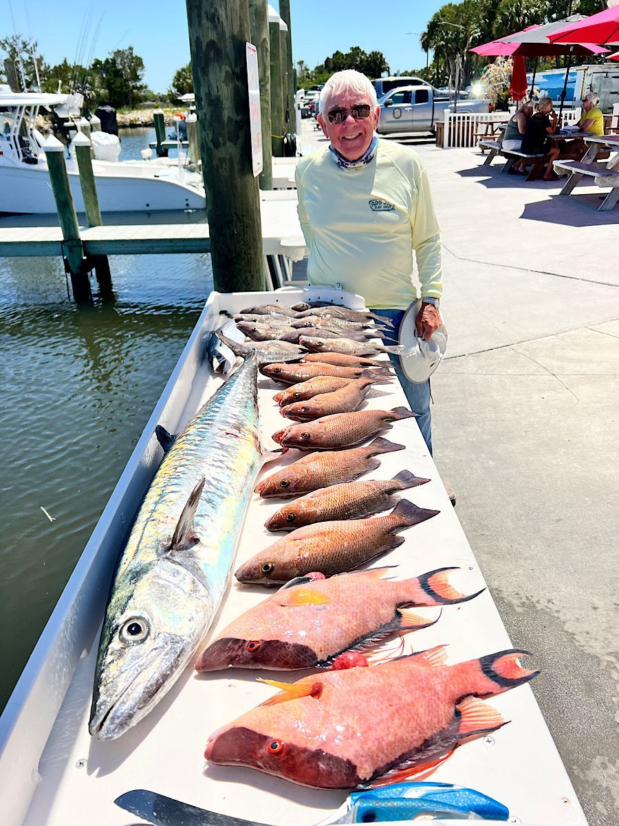 King Mackerel—Kings are in! We have been finding most of our kingfish from 20’ of water on out. While targeting rock piles, a freelined pinfish or threadfin herring has been the ticket to adding a "smoker" to the mixed bag trip. Trolling big Rapala lipped plugs has been a great resource for us to actively fish between spots and get some dramatic aerial strikes from kings as they hit plugs and launch skyward.