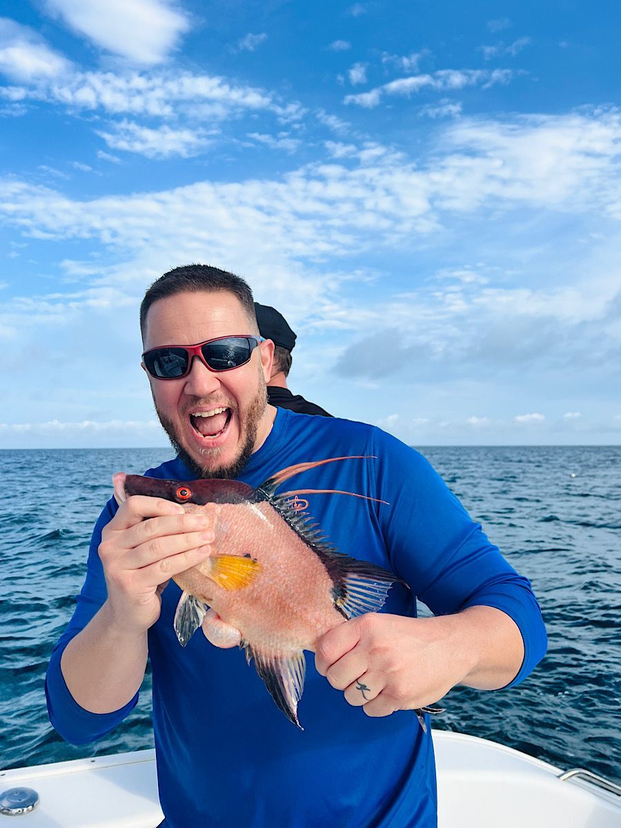 Mangrove Snapper & Hogfish—The rockpile duo is still making its way into the mix. Both mangroves and hogfish have been reliable targets for mixed-bag trips in the 40’ and deeper range. Shrimp on a jighead with a long leader has been the ticket.