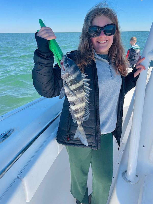 Sheepshead fishing is excellent this time of year, making it a prime target for offshore anglers. If you’re used to fishing shallow areas (5-10 feet), you may notice some of these spots are getting a bit barren. Instead, shift your focus to deeper waters ranging from 15 to 40 feet.